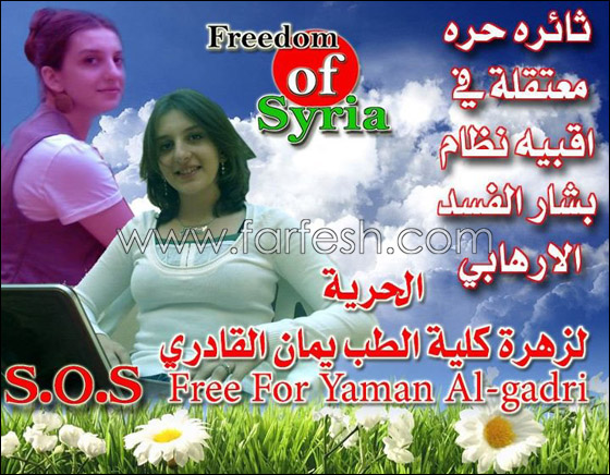 كما كتب طالب من كلية الطب نفسها يقول: "ركبنا بآلة الزمن. والزمن عاد بالدمشقيين 610 سنين للوراء. يعني زمن الأعرج تيمورلنك. مدننا محاصرة وشبابنا يقتلون وفتياتنا يخطفون، والله الموت أهون، يللا شدوا الهمة يا شباب واسقطوا النظام أو تعالوا لنسقط نحن شهداء، لتعيش سوريانا الحبيبة". ثم كتبت زميلة لها أمس الاثنين بالذات، وقالت: "هل صديقتي المسالمة والمعروفة بأخلاقها العالية وانتمائها لعائلة كبيرة ومحترمة في سوريا هي مندسة أو من العصابات المسلحة".