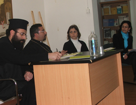 من بين المتحدثين في الندوة الأب الياس ضو- رئيس محكمة الاستئناف الكنسية لطائفة الروم الكاثوليك، الأب الياس خوري- سكرتير المحكمة الكنسية في عكا لطائفة الروم الأرثوذكس، المحامية الحان نحاس والمحامية شيرين بطشون، من القسم القانوني في التنظيم النسوي- كيان. هدفت هذه الندوة والتي التئمت للمرة الأولى للنقاش والحوار المفتوح حول أكثر الأمور الهامة والشائكة معا، لزيادة الشفافية والوعي حول ما يجري في المحاكم الكنسية لدى جمهور النساء وصناع القرار، ولتحسين الخدمات المتوفرة لجمهور المتوجهين\ات.
