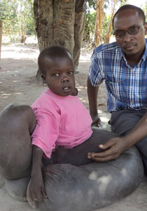 وقال تيتو أوبويا والد الطفل فينسينت: "إنه حقا أمر مزعج له لأنه مضطر لأن يرتدي ملابس الفتيات فيعايره الأطفال.. إنه صغير لكن ساقيه ثقيلتان جدا". ولاحظت أسرة الطفل أن لديه مشكلة صحية عندما كان عمره 18 شهرا ولكن حالة الفقر التي كانت تعاني منها حرمتها من عرضه على طبيب.