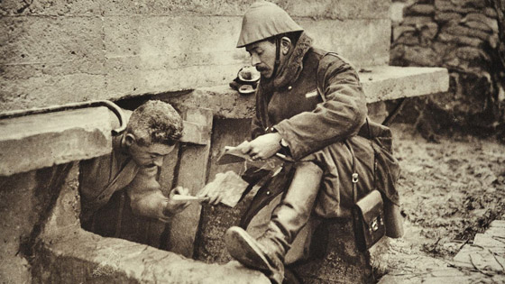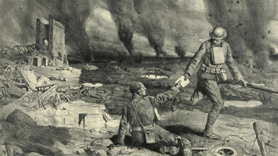 لوحة تجسد عملية نقل إحدى الرسائل بالحرب العالمية الأولى