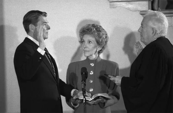 كان حفل تنصيب رونالد ريغان الأول في عام 1981، هو الأول الذي أقيم على الواجهة الغربية لمبنى الكابيتول، وهو الموقع المعتاد منذ ذلك الحين. وقال المؤرخ الأمريكي وأستاذ التاريخ في الجامعة الأمريكية في العاصمة واشنطن آلان ليختمان، إن مبنى الكابيتول يعد قلعة الديمقراطية الأمريكية، وتنظيم التنصيب هناك يؤكد الالتزام بالديمقراطية المرتبطة بسيادة الشعب.