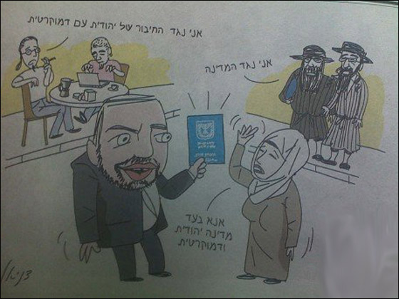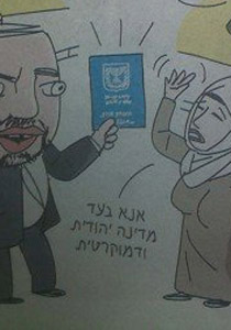 تعبّر الرسوم الكاريكاتورية عن وضع معين بشكل ساخر، وقد نشرت صحيفة "يديعوت احرونوت" الناطقة بالعبرية رسما كاريكاتورياً للرسامة دانييلا اوضحت من خلاله فشل كل نظرية يهودية الدولة الالزامية للسكان العرب.