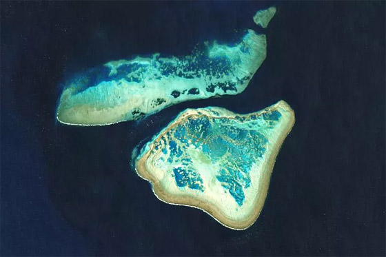 - منظر من الفضاء للحيّد المرجاني العظيم بالقرب من سواحل أستراليا.
