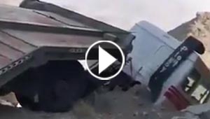 فيديو يخطف الأنفاس: شاحنة معلقة بالهواء فوق واد في السعودية ..