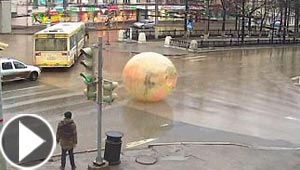 حادثة غريبة: فقاعة هائلة ملونة تتدحرج بنفسها في شارع مدينة ..