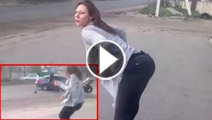 فيديو: رقصة فتاة جميلة على الطريق تسبب حادث بين سيارة ودراجة! ..