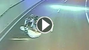 فيديو صادم.. نجاة سائق دراجة نارية من ضربة فراش غير عادية