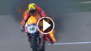 فيديو مذهل.. اشتعال النيران في دراجة بخارية والمتسابق يوصل ..