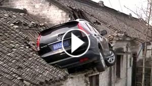 فيديو غريب: سيارة على سقف منزل! كيف استقرت هناك؟