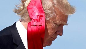 صور: شريط لاصق على ربطة عنق ترامب الحمراء يثير الجدل