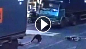 فيديو وصور: سائق دراجة نارية متهور ينجو من الموت سحقا بعجلات ..