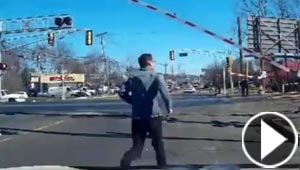 فيديو مثير.. سائق شجاع ينقذ مسنة لحظات قبل ان يسحقها قطار