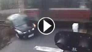 أخطأ السائق المتهور فسحق سيارته القطار.. فيديو مروع