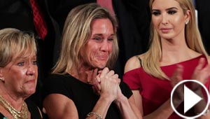 دموع امرأة شقراء تلفت نظر الجميع اثناء خطاب ترامب وتهز ..