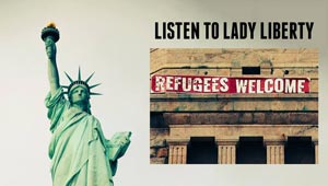 نيويورك: لافتة على تمثال الحرية ترحب باللاجئين