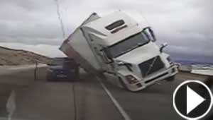 فيديو مروع.. شاحنة تنقلب على سيارة شرطة وتسحقها