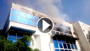 شاهد بالفيديو لحظة اشتعال النار في قناة تلفزيونية اثناء بث ..