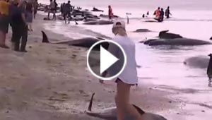 نفوق 461 حوتا بعد ان جنحت الى شواطئ نيوزيلندا.. فيديو