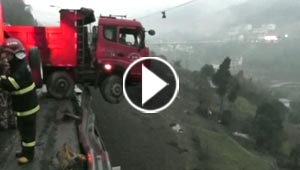 شاحنة على شفا هاوية سحيقة.. فيديو مروع ونهاية سعيدة!