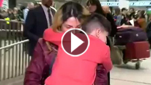 طفل ايراني يعانق امه بحرارة بعد اعتقاله في مطار واشنطن.. ..