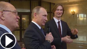 فيديو بوتين يغني امام طلاب جامعة موسكو ويبهر الطلاب بموهبته ..