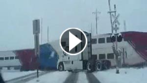 فيديو اصطدام قطار بشاحنة فقسمها إلى نصفين