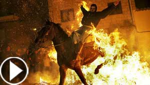 صور وفيديو مهرجان اقتحام النار بالخيول في اسبانيا