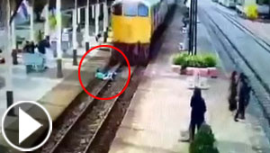 شاهد كيف نجا هذا المنتحر من بين عجلات القطار.. فيديو