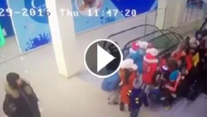 فيديو مؤلم.. حادث طلابي مروع لعشرات الاطفال على درج متحرك