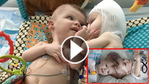 طفلان ملتصقان يرى الواحد منهما وجه توأمه لاول بعد فصلهما! ..
