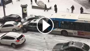 فيديو مثير..انزلاق سيارات واصطدامها ببعضها في كندا