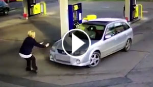 فيديو مثير.. سائق يدهس عاملة في محطة وقود عمدا ويفر هاربا