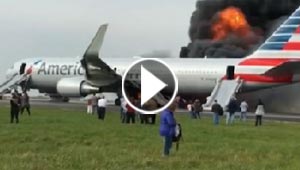 انفجار اطار يتسبب باشتعال جناح طائرة امريكية و 20 مصابا