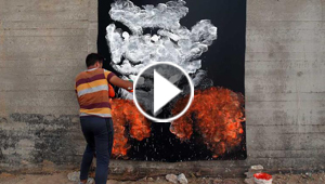 فنان فلسطيني يرسم جدارية محمد علي كلاي باستخدام قفازات ..