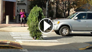 اعتقال شجرة متحركة وهي تعبر الشارع وتراقب رد فعل السائقين! ..