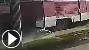 فيديو مروع.. علقت قدم الرجل فسحلته سائقة ترام 500 متر