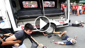 فيديو عنيف: سيارة شرطة في الفلبين تدهس متظاهرين وتصعد فوقهم! ..