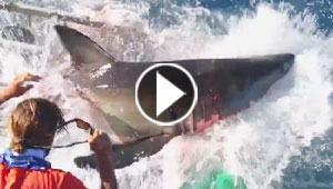 مشهد مثير.. سمكة قرش عملاقة تحطم قفصا بداخله غواص!