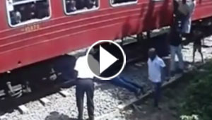 فيديو مروع.. انتحار شاب بالقاء نفسه على سكة القطار وانشطاره ..