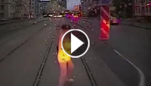 فيديو مثير.. حافلة ترام تدهس امرأة وهي منشغلة بهاتفها ..