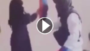 فيديو مروع.. داعشي يدرب ابنته الصغيرة على حمل السلاح ..
