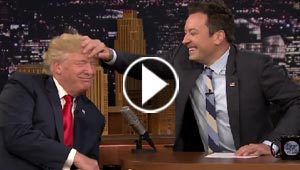 مذيع يعبث بشعر دونالد ترامب للتاكد من انه ليس مستعارا.. ..