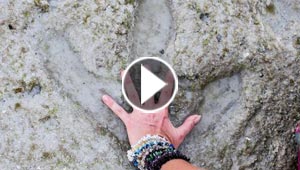 طبعة قدم ديناصر على صخور شاطئ عمرها 130 مليون سنة