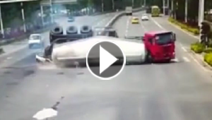 شاحنة تدهس سيارة وتحولها الى قطعة خردة.. لقطات مروعة
