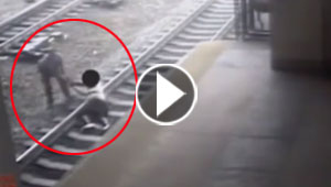 شرطي شجاع يسحب رجلا عن سكة حديد قبل ثانية من مرور القطار
