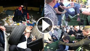 اوكرانيون يلقون الوزراء والمسؤولين الفاسدين في حاويات القمامة.. ..