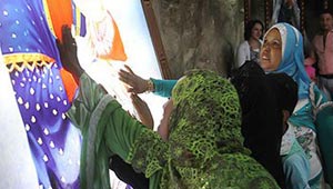 محجبات ومنتقبات يوفين النذور للسيدة العذراء ويتباركن بها ..