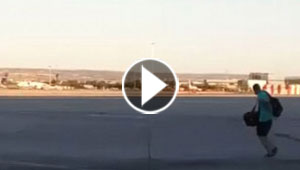 فيديو وصور.. مسافر يلاحق طائرة على مدرج المطار بعد ان فاته ..