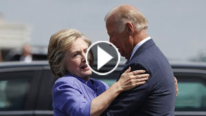 جو بايدن يعانق هيلاري كلينتون بصورة تسببت لها بحرج بالغ.. ..