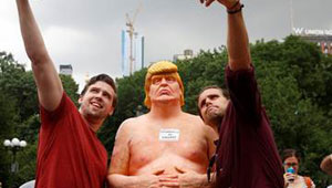 تمثال دونالد ترامب كما ولدته امه يثير الدهشة في حدائق عامة ..
